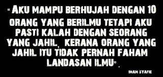 “Aku mampu berhujah dengan 10 orang yang berilmu, tapi aku pasti kalah dengan seorang yang jahil, karena orang yang jahil itu tidak pernah faham landasan ilmu”.